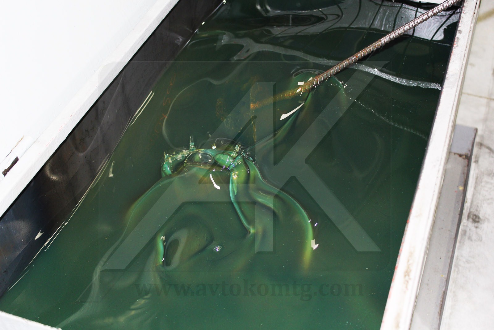 Step hardening is a cooling process in which a part is quickly immersed in a molten salt and cooled to a temperature slightly above room temperature, where it is held for a short time and then cooled in air. Exposure provides equalization of temperature from the surface to the core of the part, which reduces stresses that occur during martensitic transformation. In our production, we use oil as a cooler.