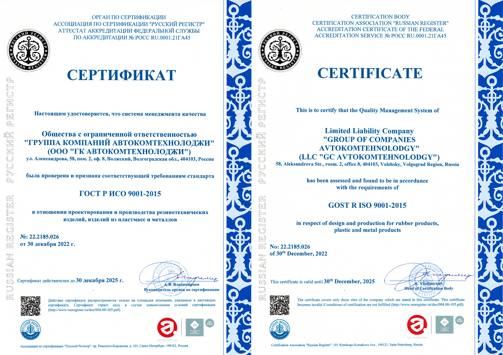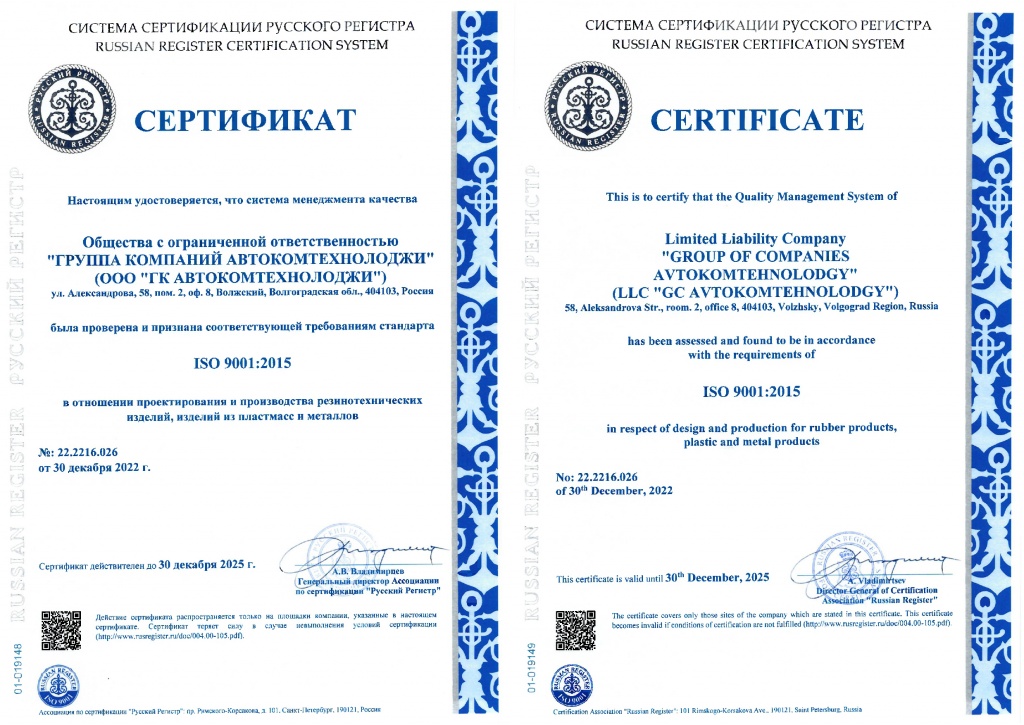 17 january 2023The quality management system of AVTOKOMTECHNOLOGY Group LLC has been tested and once again recognized as meeting the requirements of ISO 9001:2015 more21 december 2022AVTOKOMTECHNOLOGY Group is successfully implementing an import substitution program, forming the technological sovereignty of the Russian Federation. more- Articles