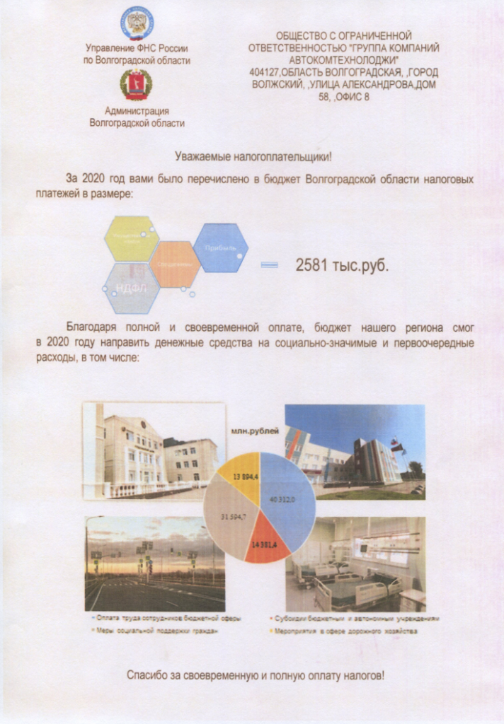 The Department of the Federal Tax Service of Russia for the Volgograd Region and the Administration of the Volgograd Region recognized AvtokomTehnolodgy as a bona fide taxpayer, as evidenced by the information letter.